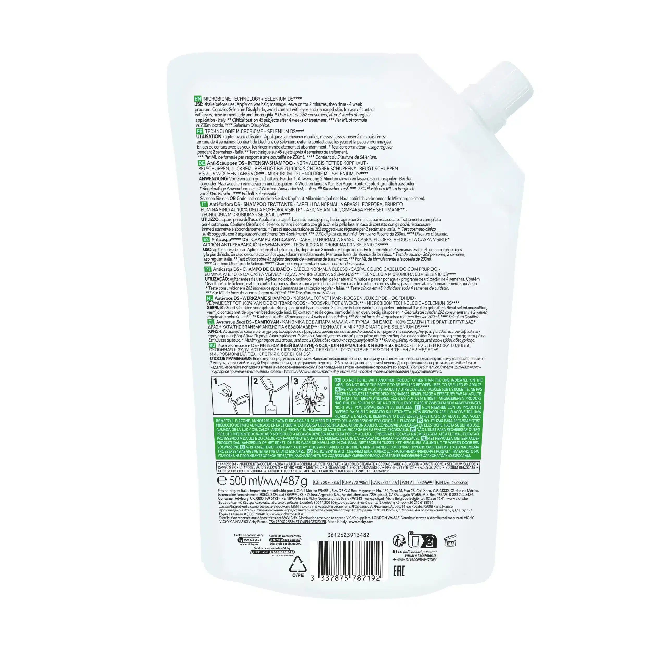 Découvrez le shampoing Vichy Dercos Eco-Refill Anti-Pelliculaire pour cheveux normaux à gras. Efficace dès la première utilisation, il élimine les pellicules, contrôle le sébum, et respecte l’environnement grâce à son format écoresponsable de 500 ml. Offrez à votre chevelure fraîcheur et éclat durable tout en prenant soin de la planète.